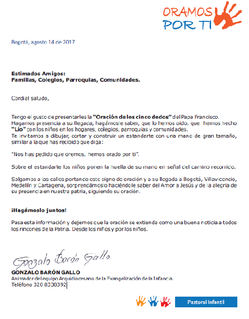 Ver también: Niños reciben al Papa con oración de los cinco dedos