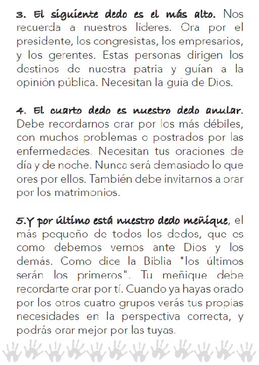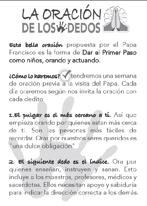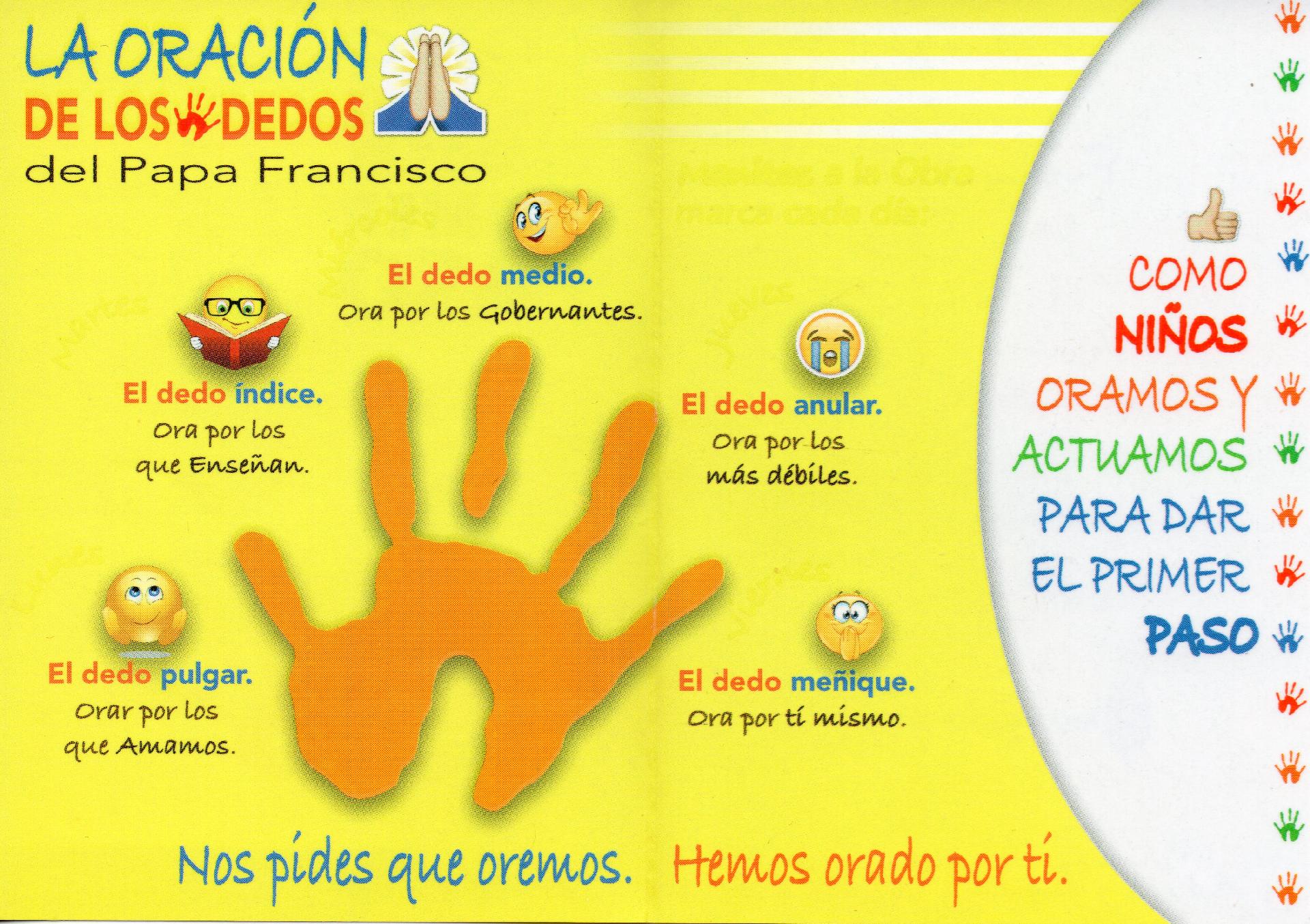 Con este bellísimo instructivo, todos los niños están invitados a hacer la oración de los dedos, tal y como el papa Francisco nos propone :3