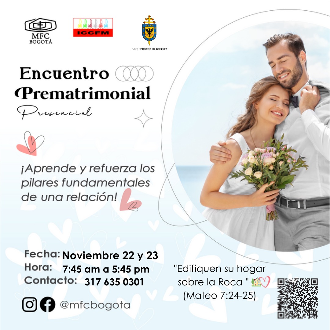 Los Centros de Preparación al Matrimonio son ambientes eclesiales de la Arquidiócesis de Bogotá animados por una vicaría episcopal una parroquia o un movimiento eclesial, que realizan el encuentro de preparación al matrimonio acompañando a los prometidos en su camino hacia el matrimonio.