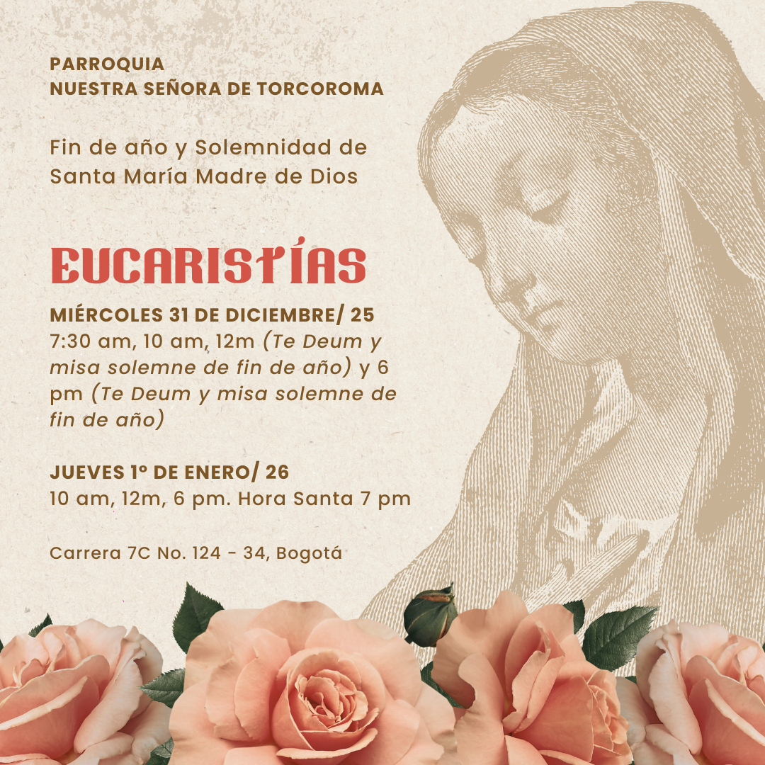 Horarios de Misas, Bautismos y Hora Santa para el 2025 22 de Diciembre de 2024 ¡¡Acércate para celebrar en familia y en comunidad un encuentro especial con el Señor!!Sólo se transmite la Hora Santa los jueves a las 6:30 p.m. en nuestro canal de 👉 Facebook Imagen Like 3 Dislike 1 Otros artículosProgramación Semana Santa 202621 de Marzo de 2026Participa en la Semana Mayor, vive cada una de nuestras celebraciones y reflexiona sobre el misterio de la salvación. Ac... “Señor, dame de esa agua para que no vuelva a tener sed”8 de Marzo de 2026Reflexión para el III Domingo de Cuaresma