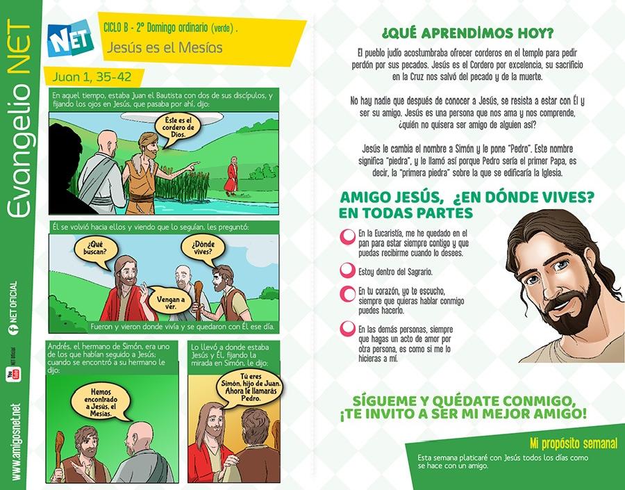 Juan 1, 35-42 para niños. 12 de Enero de 2018 Dios nos habla a todos, sin importar nuestra edad o condición social. Conoce lo que él tiene hoy para decirte. Síguenos en nuestra FAN PAGE de FACEBOOK PARROQUIA NUESTRA SEÑORA DE TORCOROMA BOGOTÁ Like 0 Dislike 0 Otros artículosProgramación Semana Santa 202621 de Marzo de 2026Participa en la Semana Mayor, vive cada una de nuestras celebraciones y reflexiona sobre el misterio de la salvación. Ac... “Señor, dame de esa agua para que no vuelva a tener sed”8 de Marzo de 2026Reflexión para el III Domingo de Cuaresma