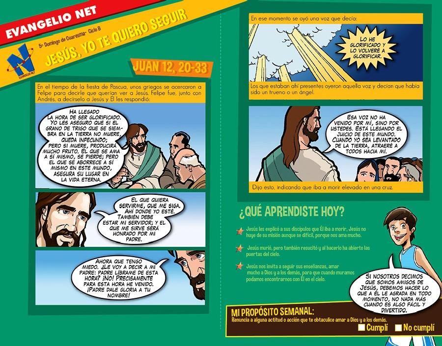 Juan 12, 20-30 para niños 20 de Marzo de 2015 Dios nos habla a todos, sin importar nuestra edad o condición social. Conoce lo que él tiene hoy para decirte. Síguenos en Facebook PARROQUIA NUESTRA SEÑORA DE TORCOROMA Like 0 Dislike 0 Otros artículosProgramación Semana Santa 202621 de Marzo de 2026Participa en la Semana Mayor, vive cada una de nuestras celebraciones y reflexiona sobre el misterio de la salvación. Ac... “Señor, dame de esa agua para que no vuelva a tener sed”8 de Marzo de 2026Reflexión para el III Domingo de Cuaresma