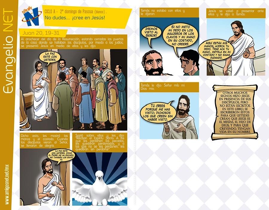 Juan 20, 19-31 para niños. 21 de Abril de 2017 Dios nos habla a todos, sin importar nuestra edad o condición social. Conoce lo que él tiene hoy para decirte. Síguenos en nuestra FAN PAGE de FACEBOOK PARROQUIA NUESTRA SEÑORA DE TORCOROMA BOGOTÁ Like 0 Dislike 0 Otros artículosProgramación Semana Santa 202621 de Marzo de 2026Participa en la Semana Mayor, vive cada una de nuestras celebraciones y reflexiona sobre el misterio de la salvación. Ac... “Señor, dame de esa agua para que no vuelva a tener sed”8 de Marzo de 2026Reflexión para el III Domingo de Cuaresma