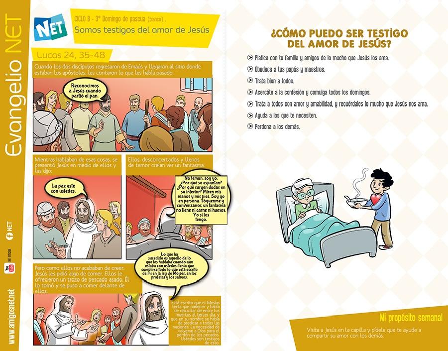 Lucas 24, 35- 48 para niños 13 de Abril de 2018 Dios nos habla a todos, sin importar nuestra edad o condición social. Conoce lo que él tiene hoy para decirte. HTML TORCOROMA Síguenos en Facebook PARROQUIA NUESTRA SEÑORA DE TORCOROMA Like 1 Dislike 0 Otros artículosProgramación Semana Santa 202621 de Marzo de 2026Participa en la Semana Mayor, vive cada una de nuestras celebraciones y reflexiona sobre el misterio de la salvación. Ac... “Señor, dame de esa agua para que no vuelva a tener sed”8 de Marzo de 2026Reflexión para el III Domingo de Cuaresma