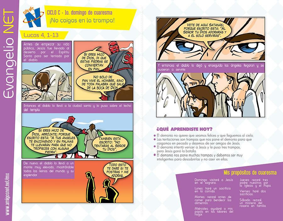Lucas 4, 1 -13 para niños 12 de Febrero de 2016 Dios nos habla a todos, sin importar nuestra edad o condición social. Conoce lo que él tiene hoy para decirte. Síguenos en Facebook PARROQUIA NUESTRA SEÑORA DE TORCOROMA Like 0 Dislike 0 Otros artículosProgramación Semana Santa 202621 de Marzo de 2026Participa en la Semana Mayor, vive cada una de nuestras celebraciones y reflexiona sobre el misterio de la salvación. Ac... “Señor, dame de esa agua para que no vuelva a tener sed”8 de Marzo de 2026Reflexión para el III Domingo de Cuaresma