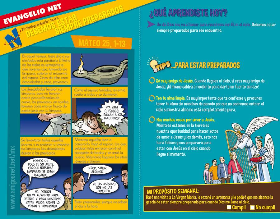 Mateo 25, 1- 13 para niños. 10 de Noviembre de 2017 Dios nos habla a todos, sin importar nuestra edad o condición social. Conoce lo que él tiene hoy para decirte Síguenos en nuestra FAN PAGE de FACEBOOK PARROQUIA NUESTRA SEÑORA DE TORCOROMA BOGOTÁ Like 0 Dislike 0 Otros artículosProgramación Semana Santa 202621 de Marzo de 2026Participa en la Semana Mayor, vive cada una de nuestras celebraciones y reflexiona sobre el misterio de la salvación. Ac... “Señor, dame de esa agua para que no vuelva a tener sed”8 de Marzo de 2026Reflexión para el III Domingo de Cuaresma