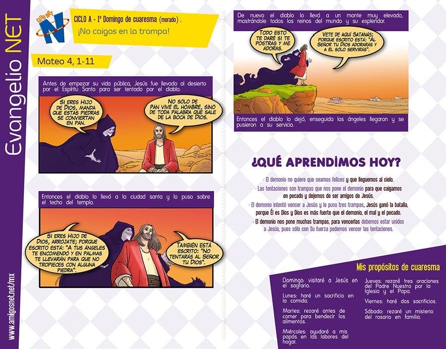 Mateo 4, 1- 11 para niños. Jesús es tentado. 3 de Marzo de 2017 Dios nos habla a todos, sin importar nuestra edad o condición social. Conoce lo que él tiene hoy para decirte. Síguenos en nuestra FAN PAGE de FACEBOOK PARROQUIA NUESTRA SEÑORA DE TORCOROMA BOGOTÁ Like 0 Dislike 0 Otros artículosProgramación Semana Santa 202621 de Marzo de 2026Participa en la Semana Mayor, vive cada una de nuestras celebraciones y reflexiona sobre el misterio de la salvación. Ac... “Señor, dame de esa agua para que no vuelva a tener sed”8 de Marzo de 2026Reflexión para el III Domingo de Cuaresma