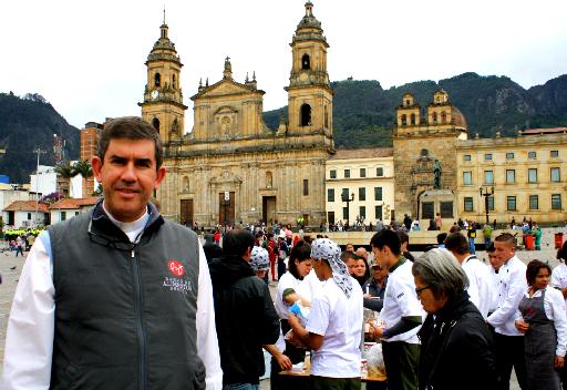 Varios chef colombianos entre ellos Harry Sasson, Eduardo Martínez y Leonor Espinosa se reunieron en la Plaza de Bolívar en el centro de Bogotá con el principal objetivo de brindar un plato de sancocho a todos los transeúntes que se acercaron al lugar.