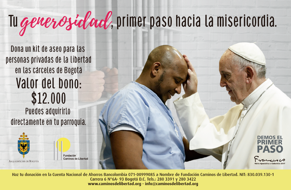 Así mismo, se espera que los kits de aseo estén listos como símbolo u ofrenda del papa Francisco, con ocasión de su visita a nuestro país, para ser entregados en su nombre a cada una de las personas privadas de la libertad que se encuentran en la cárcel Modelo, Buen Pastor, la Picota y la cárcel Distrital.
